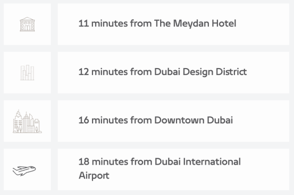 Naya at District One is located in District One, part of Mohammed Bin Rashid City. Residents of the project will benefit from the easy connectivity to other areas of Dubai. Downtown Dubai, DIFC, and Business Bay are reachable within 15 minutes by car. Travel time to Dubai International Airport will take less than 20 minutes.